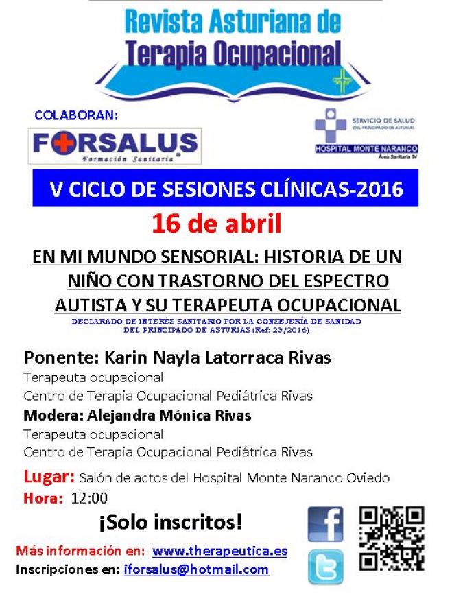 V CICLO DE SESIONES CLINICAS REVISTA ASTURIANA DE TERAPIA OCUPACIONAL Escrito por therapeutica Martes, 03 Mayo 2016 08:52 Leer más ...